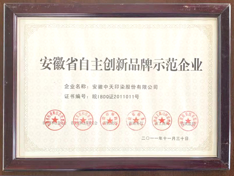 安徽省自主創(chuàng)新品牌示范企業(yè)